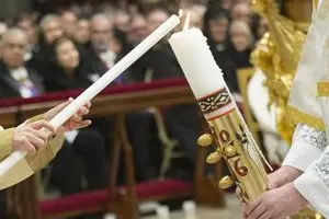 1) Liturgy of Light which begins with the blessing of the fire, the preparation and lighting of the candle as the “light of Christ”, and the procession with which it is introduced into the dark church, which is then illuminated by the candles of the faithful lit from the Paschal candle. The solemn Easter announcement follows, also called the initial Latin word Exultet;
